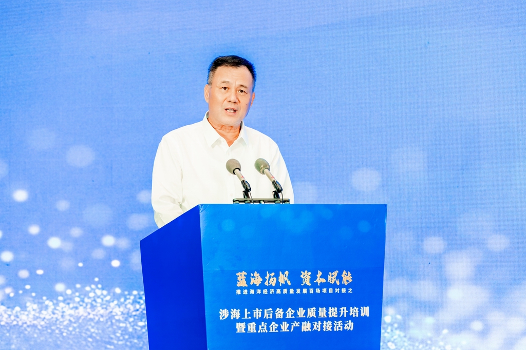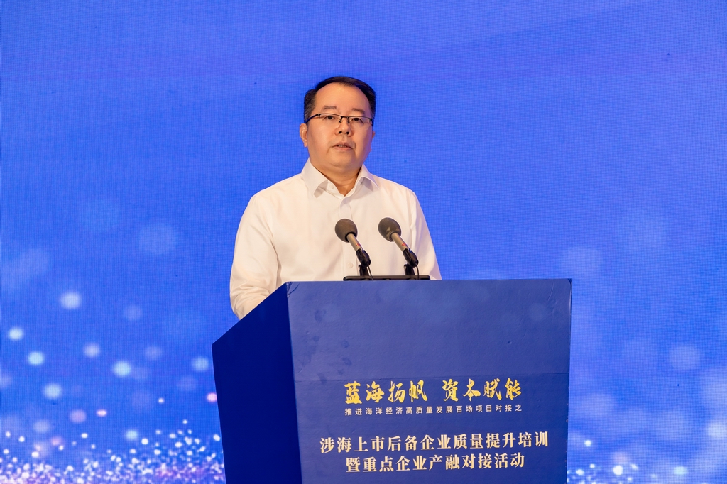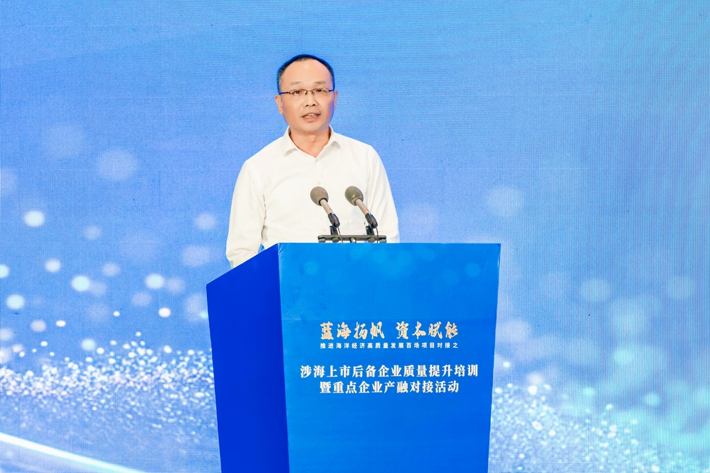 为持续深入学习贯彻习近平总书记关于海洋强国建设重要论述和在闽考察重要讲话精神,认真贯彻落实中央财经委员会第六次会议和省委十一届七次、八次全会部署要求,进一步强化金融服务支撑促进涉海上市后备企业质量提升,2025年8月29日,推进海洋经济高质量发展百场项目对接之“涉海上市后备企业质量提升培训暨重点企业产融对接活动”在福州顺利举办。福建省海洋与渔业局党组书记、局长颜志煌出席活动并代表主办方致辞。福建省委金融委员会办公室副主任温正斌出席活动。中国证券监督管理委员会福建监管局副局长翁国斌,兴业证券股份有限公司总裁刘志辉分别致辞。福建省海洋与渔业局党组成员、副局长刘庆丰主持领导致辞环节。